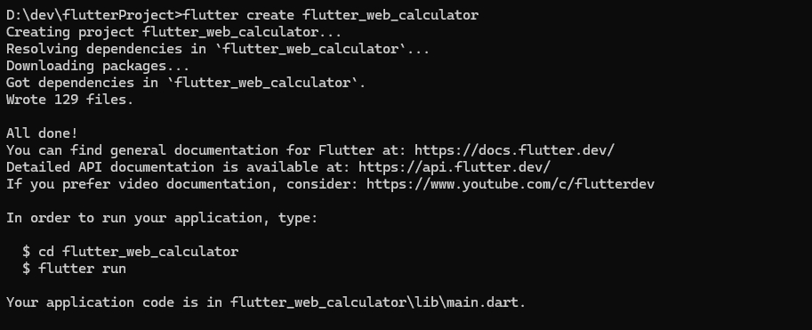3) 명령어로 Flutter 프로젝트 생성