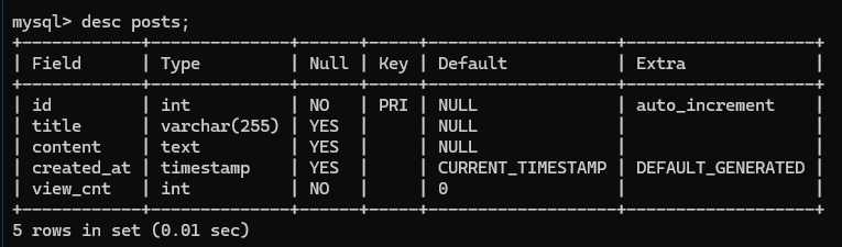 posts 배열을 map으로 순회하여 각 게시글의 title, content, created_at 등을 행(tr)에 표시했다