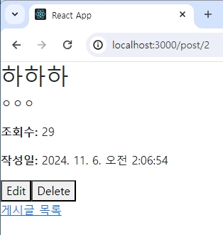 | 2. React와 Node.js를 사용한 게시판 웹 애플리케이션 만들기 - CRUD API 구현, 게시글 수정과 삭제 이벤트, Endpoint (6) | 2024.11.14 |