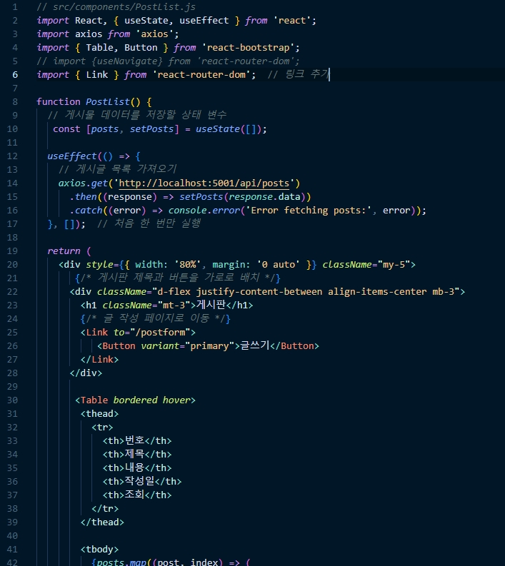 5. 게시판 목록에 Bootstrap 적용 > PostList.js 적용