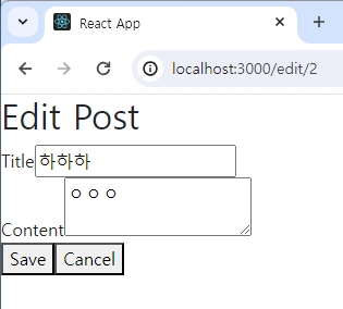 // 게시글 데이터를 가져와서 수정할 수 있도록 제목과 내용 상태에 저장