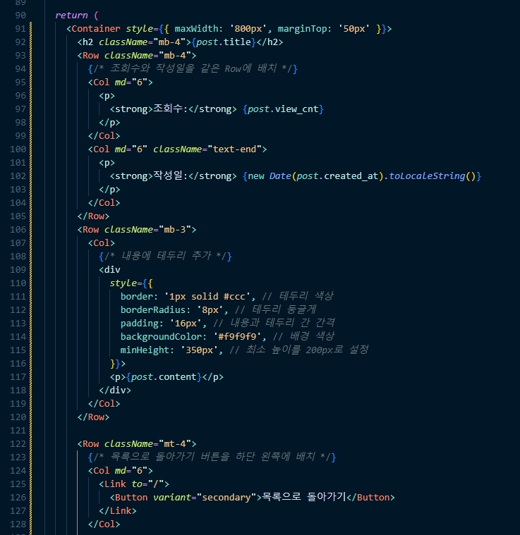 {/* 조회수와 작성일을 같은 Row에 배치 */}