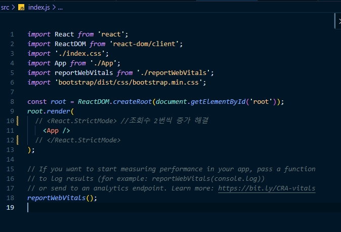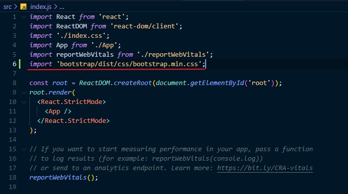 src/index.js 파일에 Bootstrap의 CSS 파일을 import하여 모든 컴포넌트에 스타일을 적용해준다