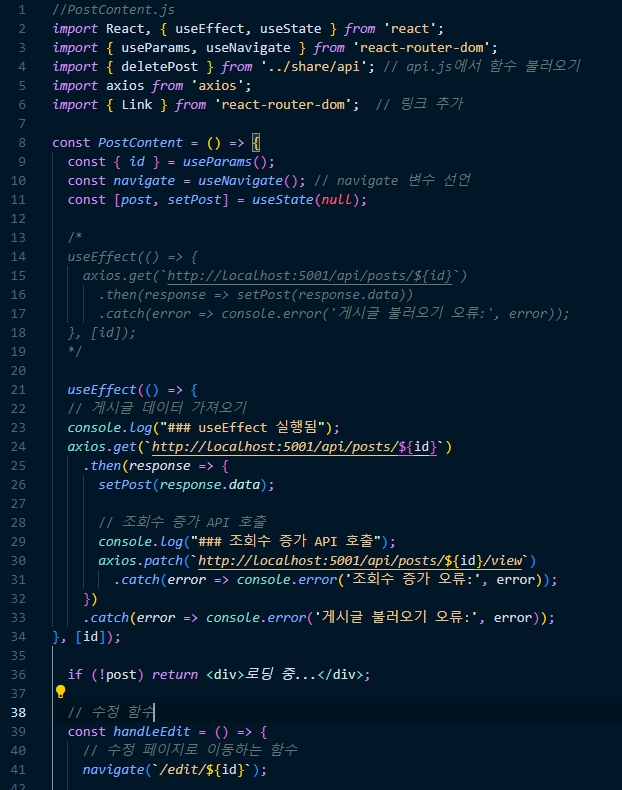 .get('http://localhost:5001/api/posts/${id}') //템플릿 리터럴 수정