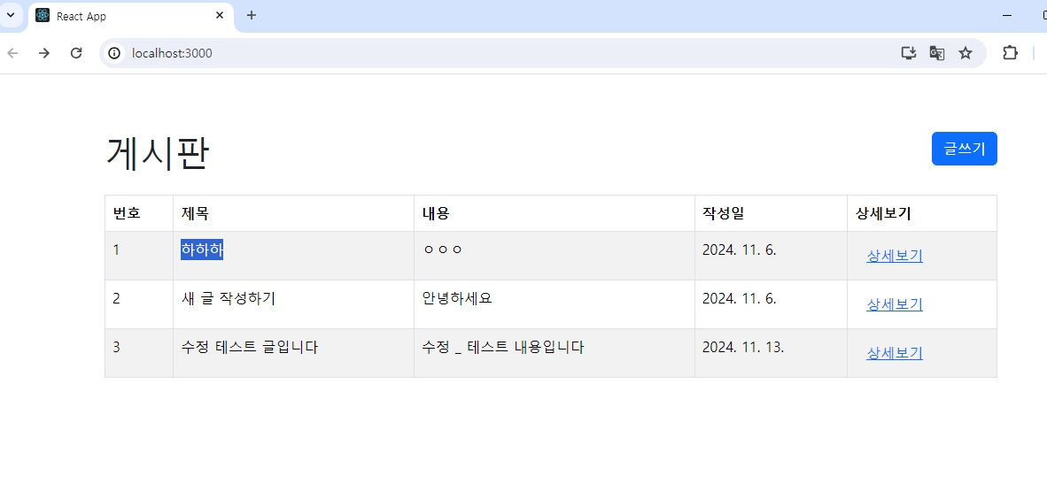 | 1. React와 Node.js를 사용한 게시판 웹 애플리케이션 만들기 - 게시판 만들기, 게시글 목록 자동 갱신, 글 추가, Router 설정, CORS 설정, MySQL (10) | 2024.11.06 |