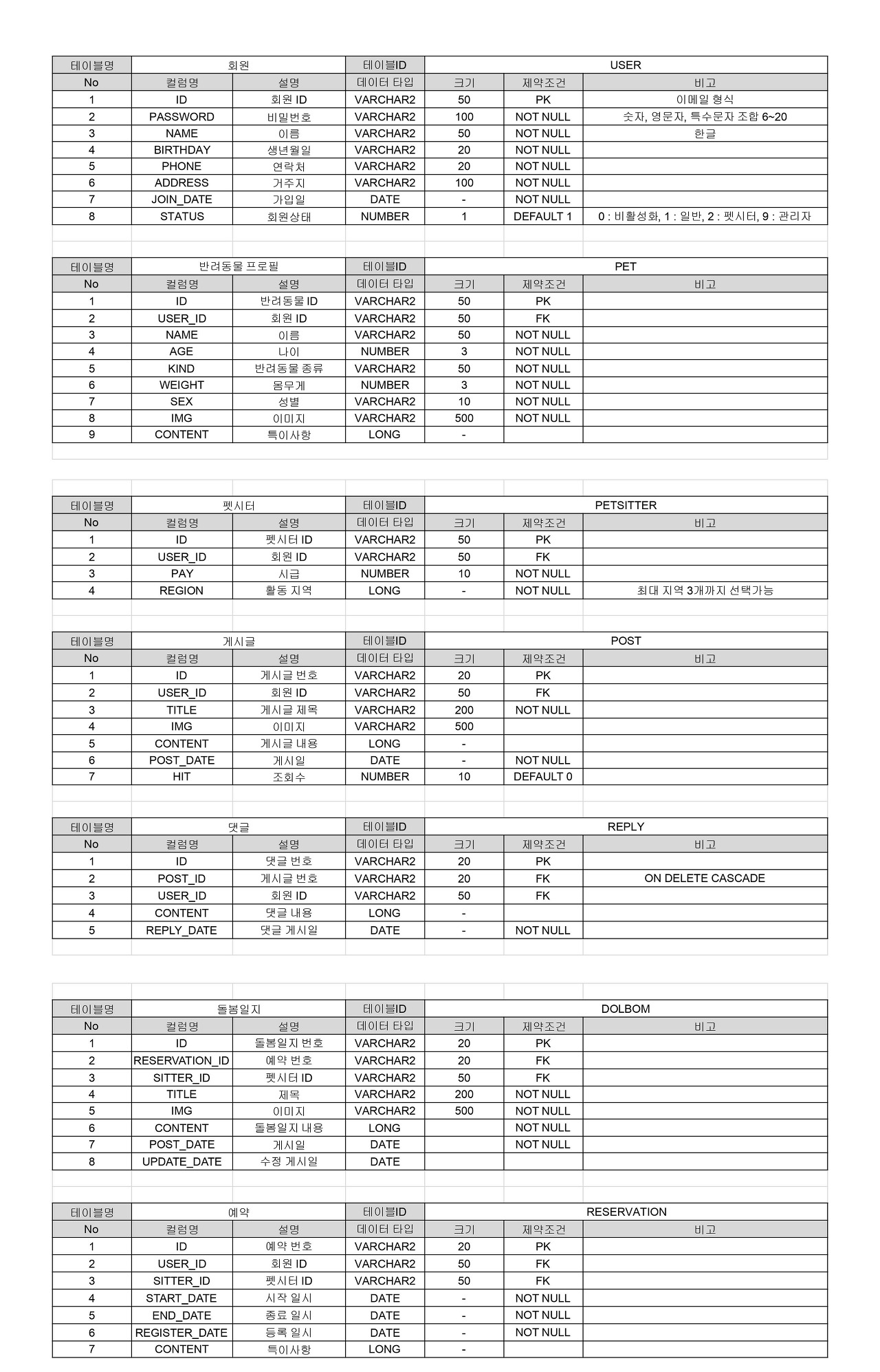 해당 table을 만들고 테스트 행을 넣어놓고 확정되었을때 not null, pk, fk 제약조건 등을 넣어 업데이트 할 예정이다!