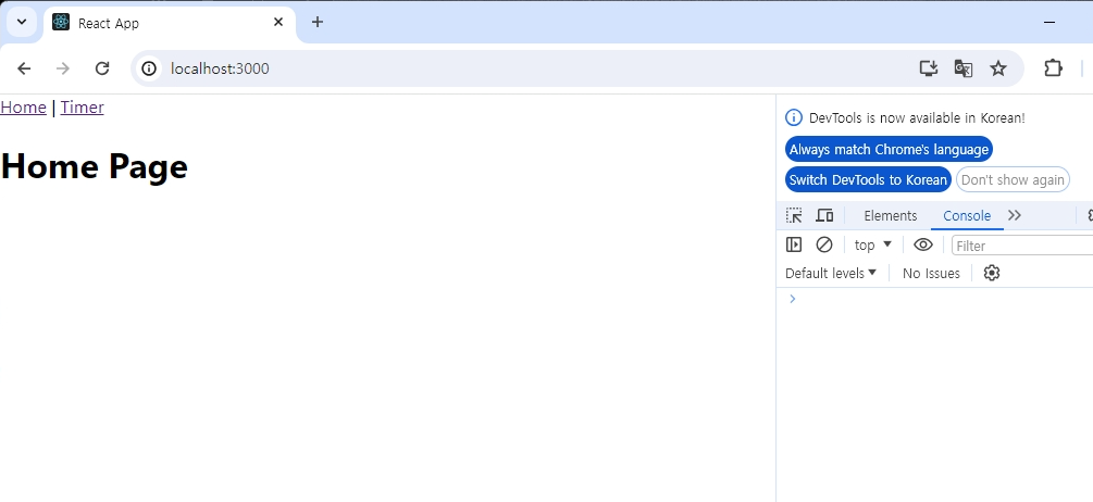 → Timer 화면에서 Home 링크를 클릭하여 Timer 컴포넌트를 제거한다