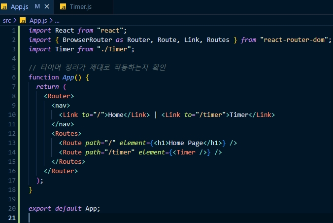 <Link to="/">Home</Link> | <Link to="/timer">Timer</Link>