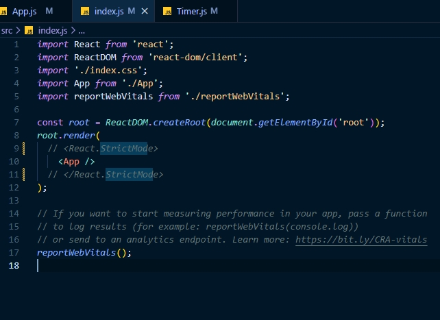 아! "componentDidMount"콘솔 출력이 두 번 찍히는 이유는 <React.strictMode>때문이다