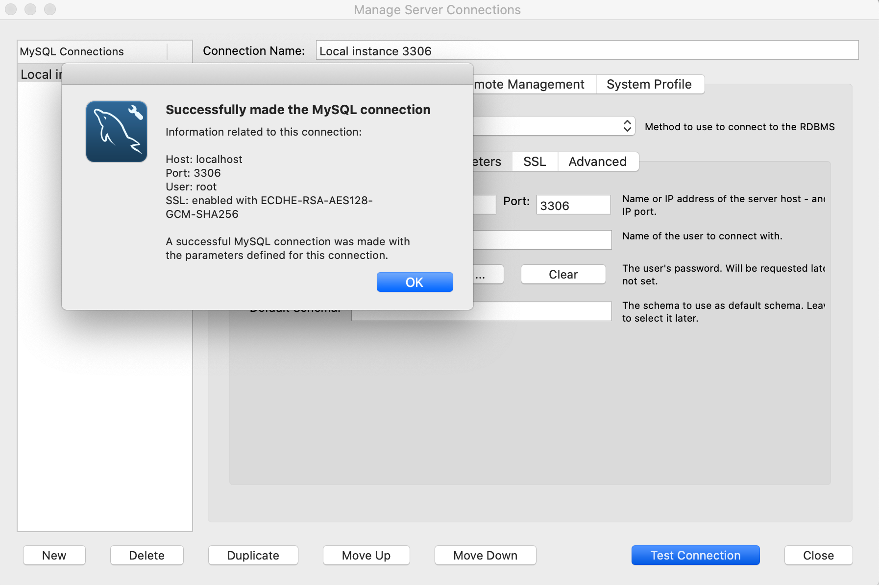 테스트 커넥션을 눌렀을 때 아래 사진처럼 해당 문구가 나오면 성공입니다!