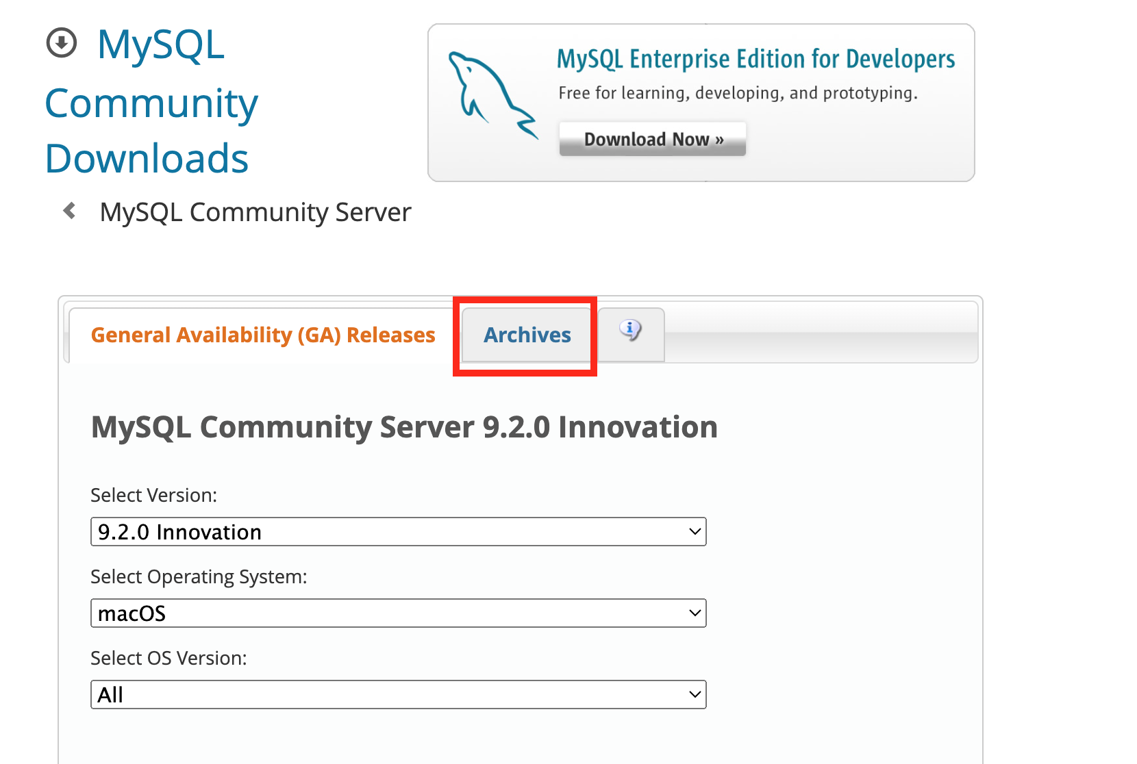 1) 다운로드 페이지에서 MySQL Community Server를 클릭