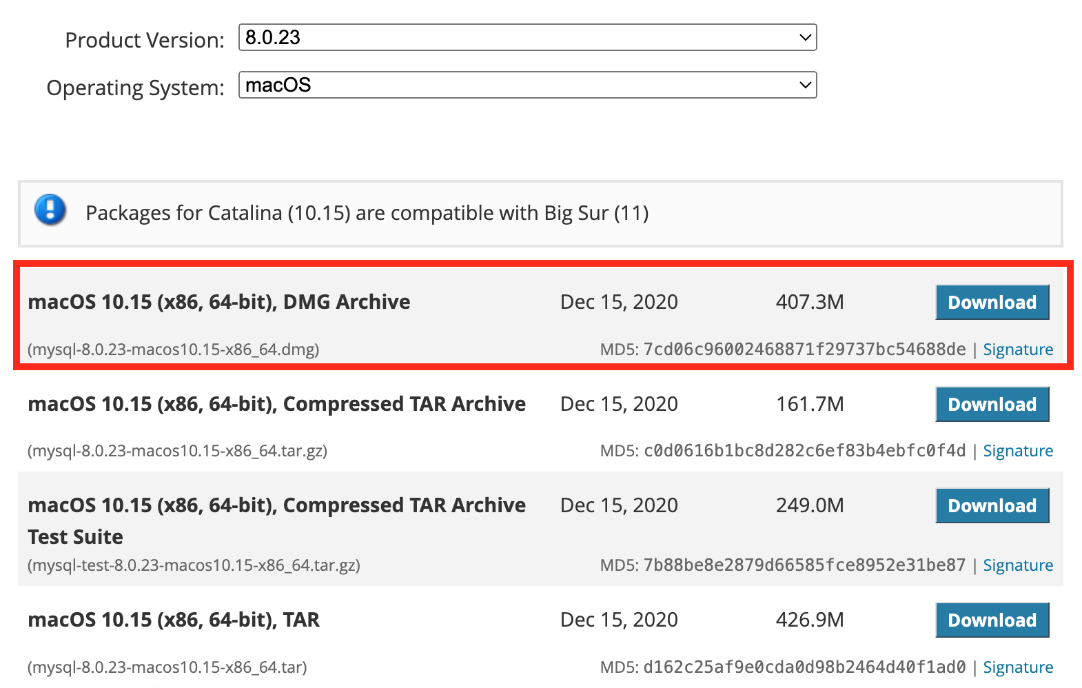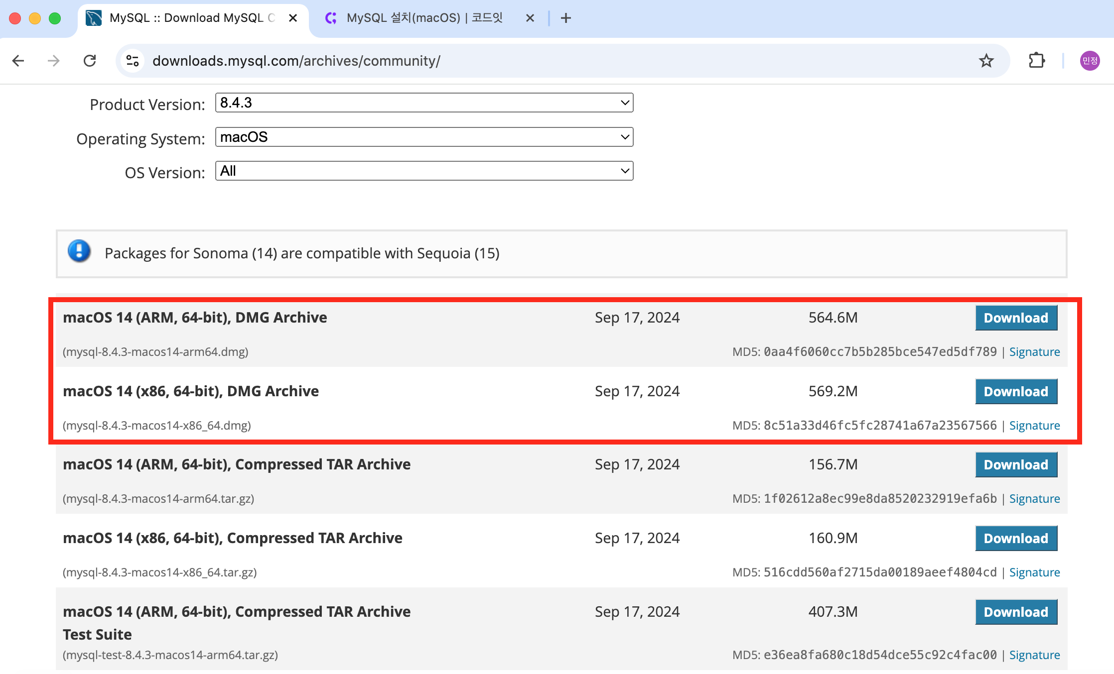 표시된 DMG Archive를 다운받아주면 되는데 mac os에 따라 파일이 나눠집니다
