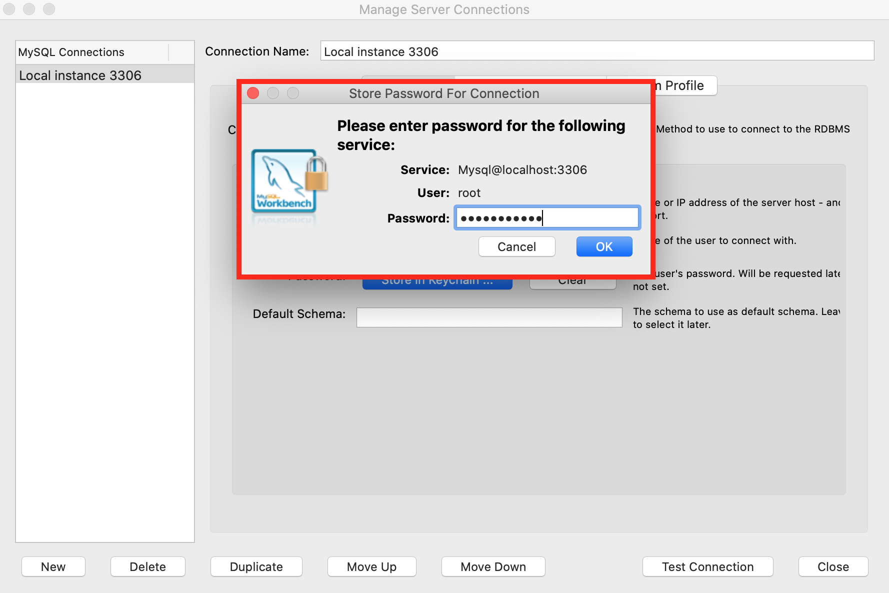 Edit Connection... 에서 설치할 때 작성한 비밀번호를 입력해줍니다