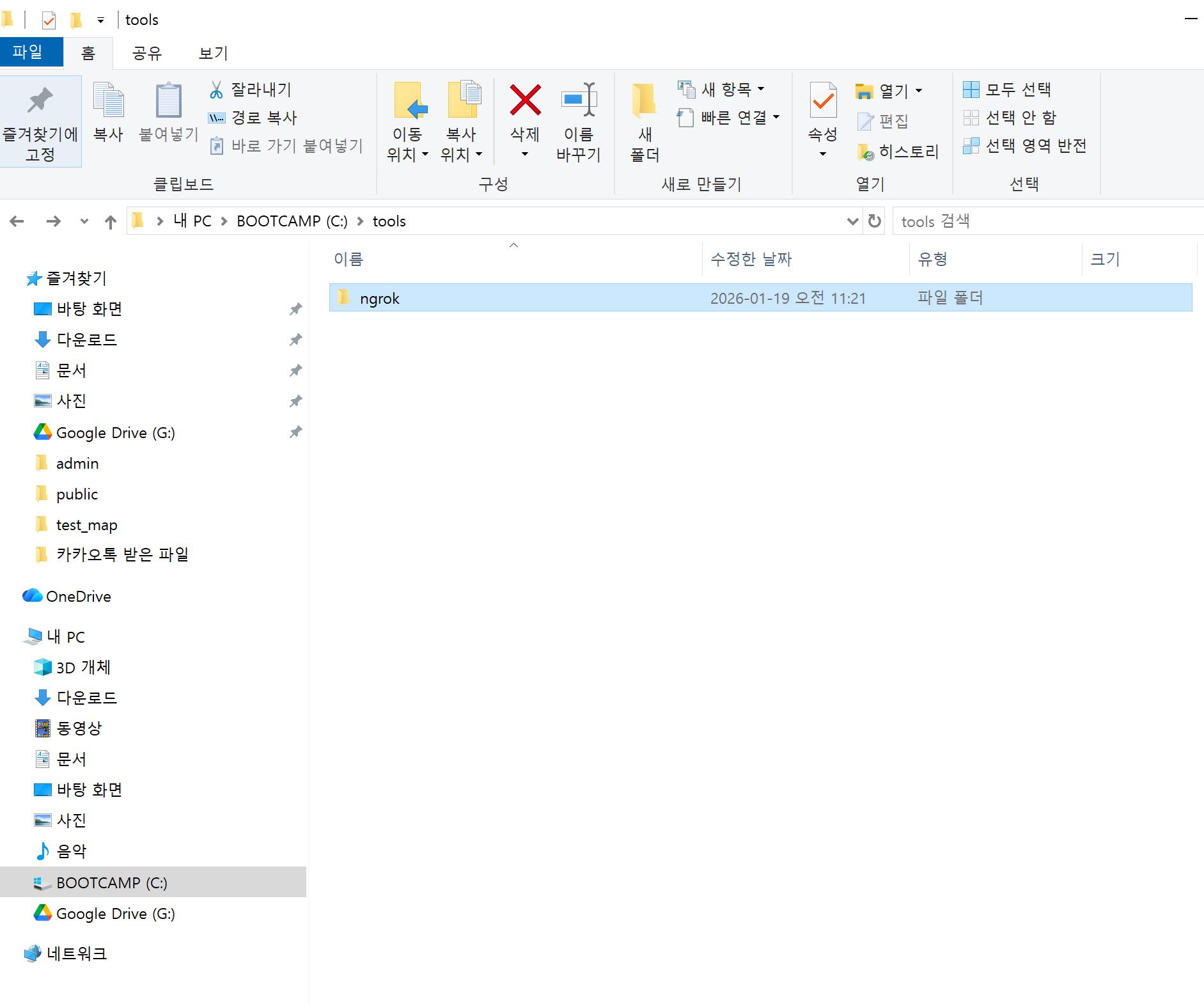 관리의 편리성을 위해 C드라이브에 tools 폴더를 만들고 설치하였다
