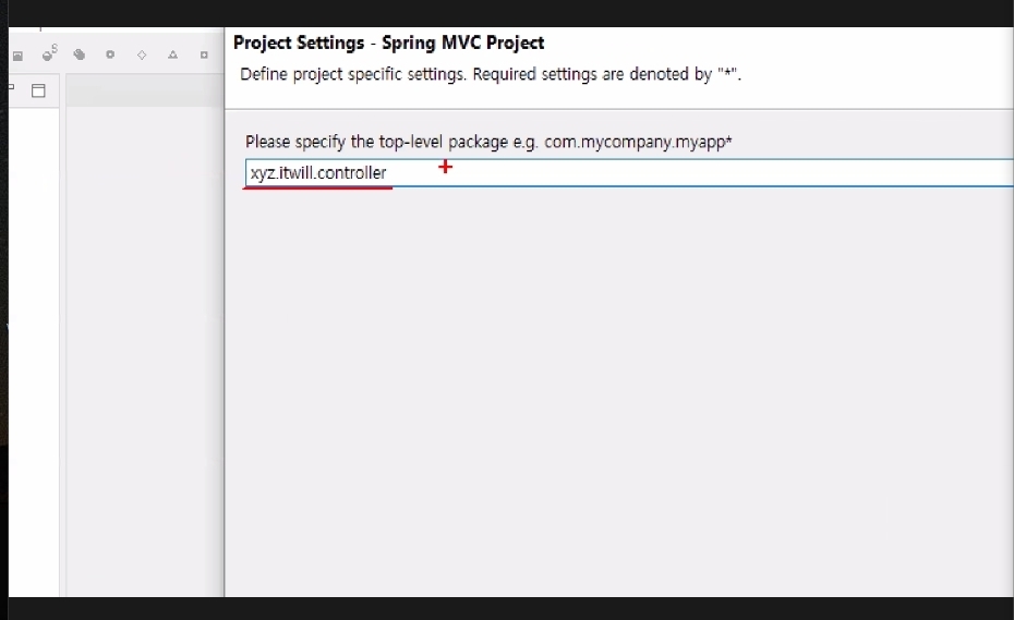 toplevelpackage 선언 >> xyz.itwill.controller 입력
