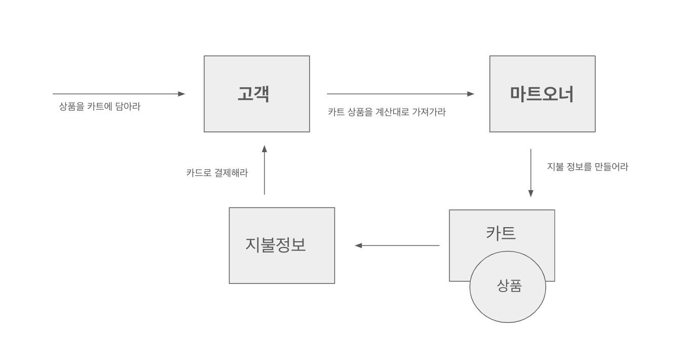 -> 고객, 카트, 상품, 마트오너, 지불정보
