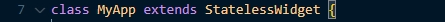 일곱번째 줄에서는 StatelessWidget을 확장(extend)하고 있는 MyAPP 클래스를 새로 만들었다