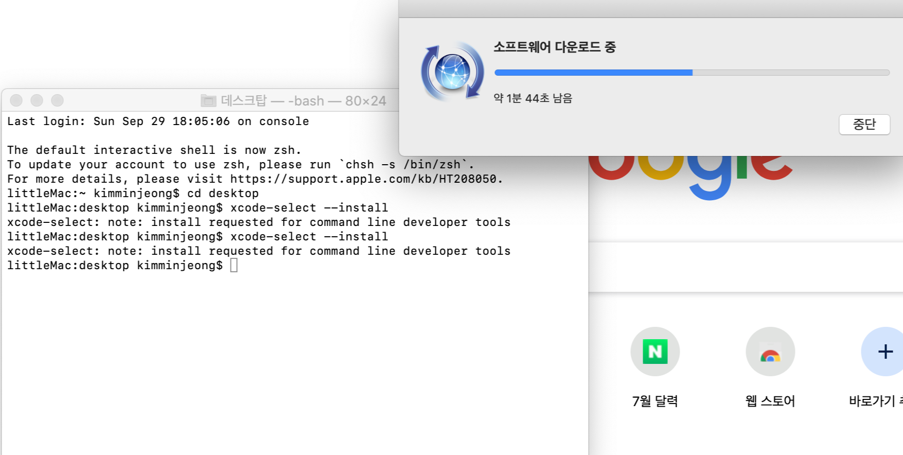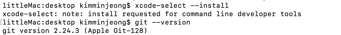해결 방법 : xcode-select 명령어로 CommandLineTools를 설치하면 해결가능