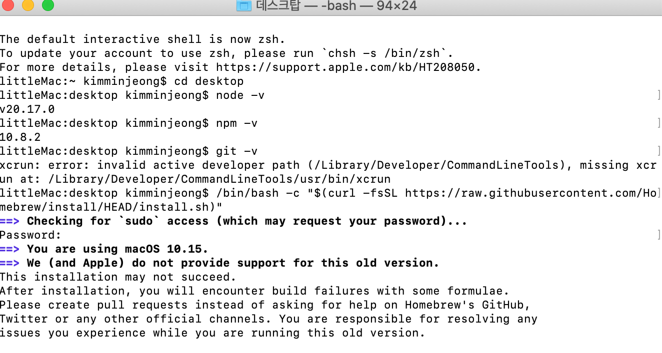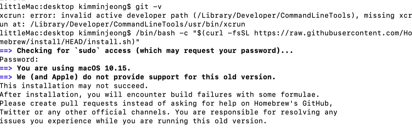 에러 내용 : xcrun: error: invalid active developer path (/Library/Developer/CommandLineTools), missing xcrun at: /Library/Developer/CommandLineTools/usr/bin/xcrun