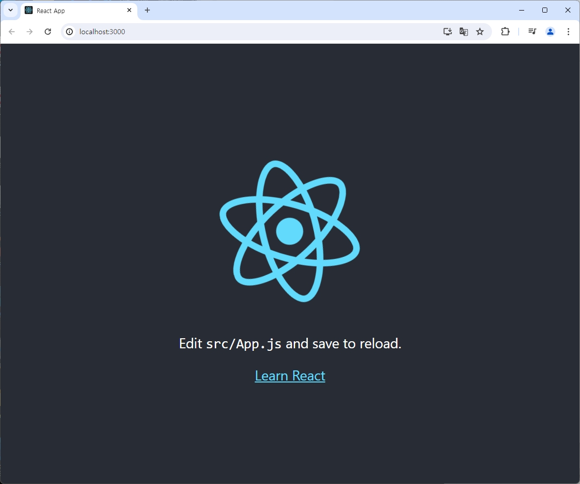 글자나 문구를 바꿔보고 싶으면 src/App.js를 변경해주면 바뀐 화면이 자동으로 나온다