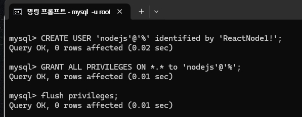 CREATE USER 'nodejs'@'%' identified by 'ReactNode1!';