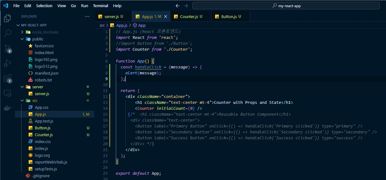 다음은 props를 사용해 부모 컴포넌트에서 초기 count 값을 자식 컴포넌트로 전달하면 된다