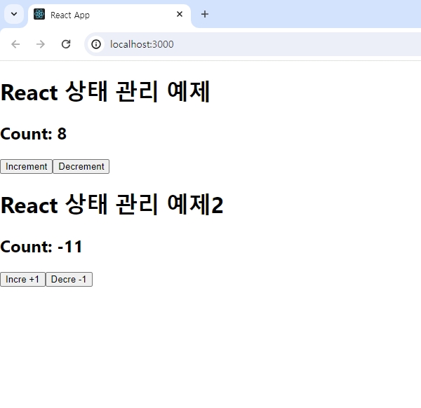> setCount 버튼을 클릭할 때마다 count 값이 1증가하거나 1 감소하고