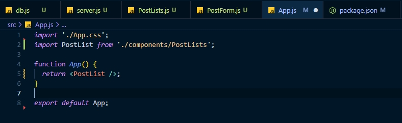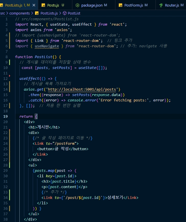 PostList.js에서는 setPosts를 정의하고 이를 PostForm.js에 전달해야 한다