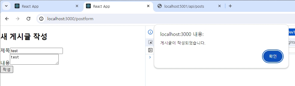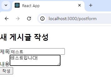 2) 목록 갱신 : PostForm 제출 후, PostList의 게시글 목록이 갱신되어 새로운 게시글이 보임