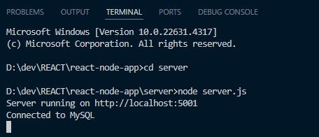터미널을 열고 server.js 파일이 있는 디렉토리로 이동