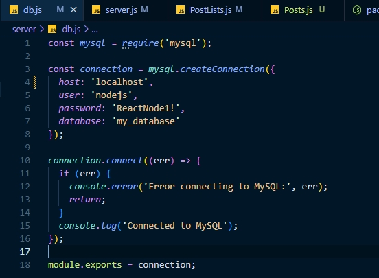 db.js의 host 부분을 host : '%'로 작성해줬더니 node server.js 명령어를 실행할 때 에러가 발생했다