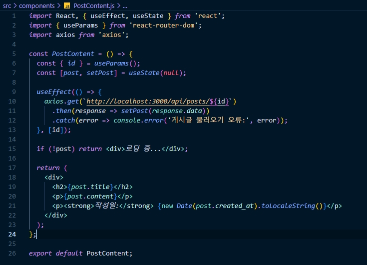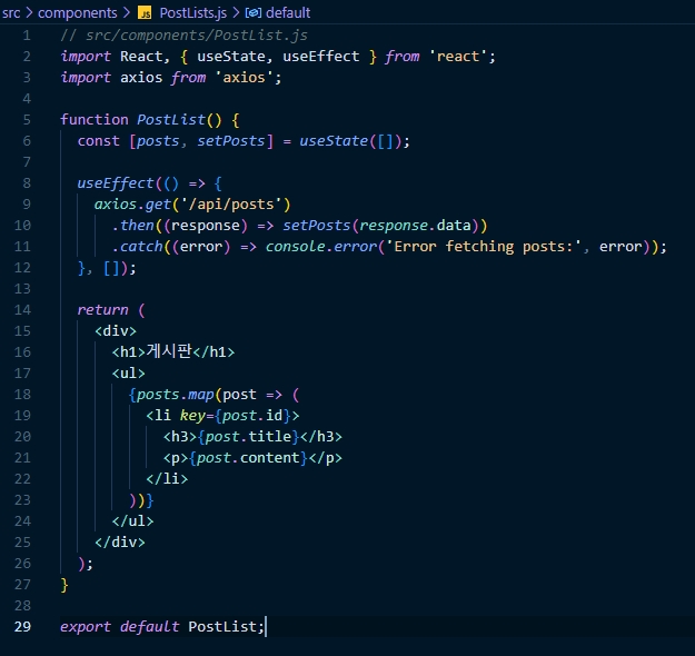 .then((response) => setPosts(response.data)) // 작성 후 PostList 업데이트