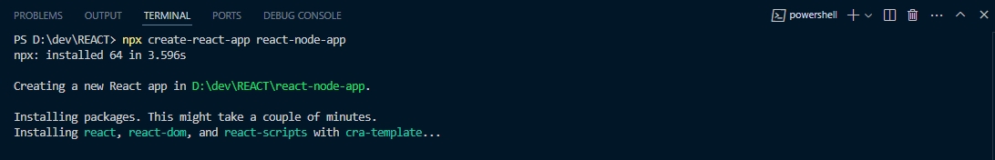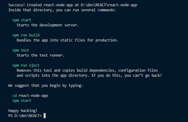 ▷ react-node-app : react-node-app 이름의 프로젝트를 만든다