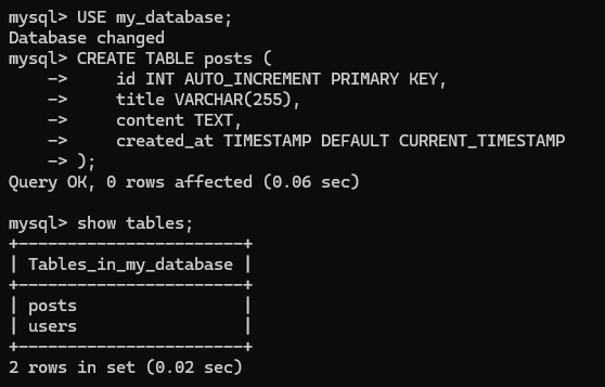 db에 posts 테이블을 만들어줄 때 id, title, content, timestamp로 생성해주었다