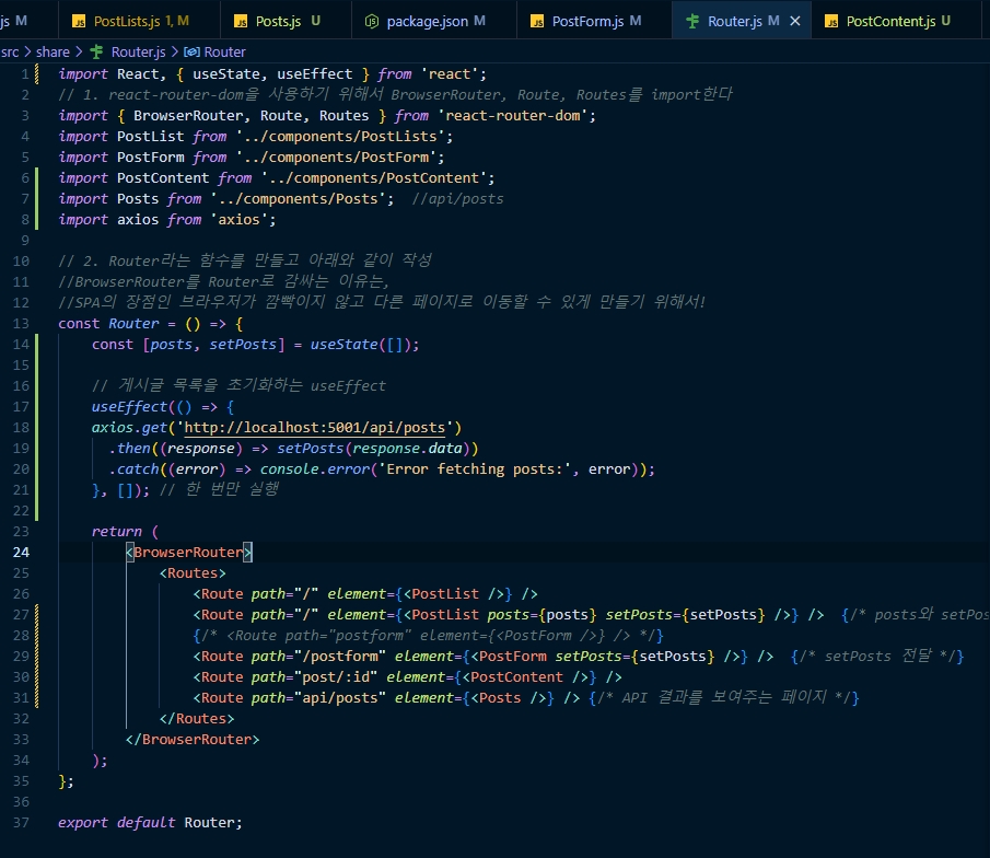 <Route path="/" element={<PostList posts={posts} setPosts={setPosts} />} /> {/* posts와 setPosts를 전달 */}