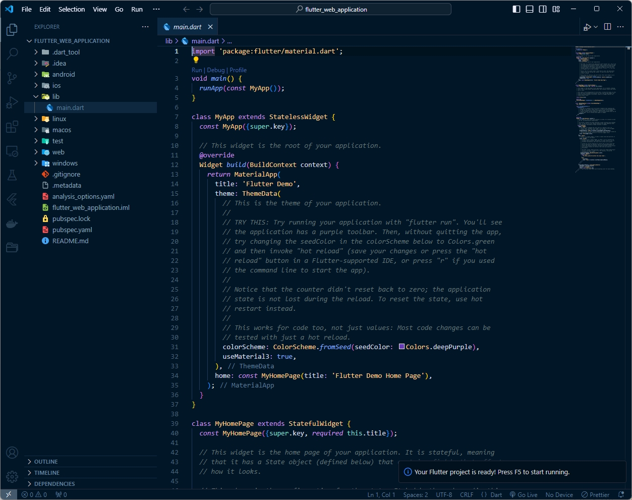 프로젝트 이름 입력 ☞ flutter_web_application