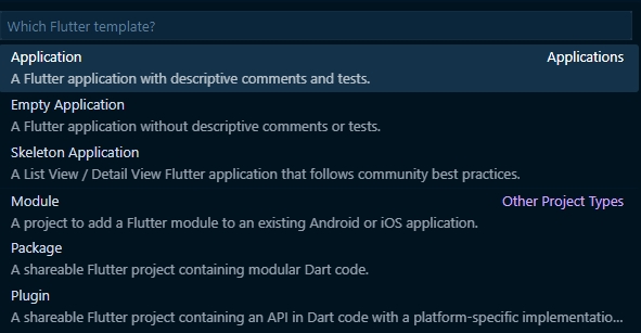 Flutter Project template을 선택하래요 ☞ Application